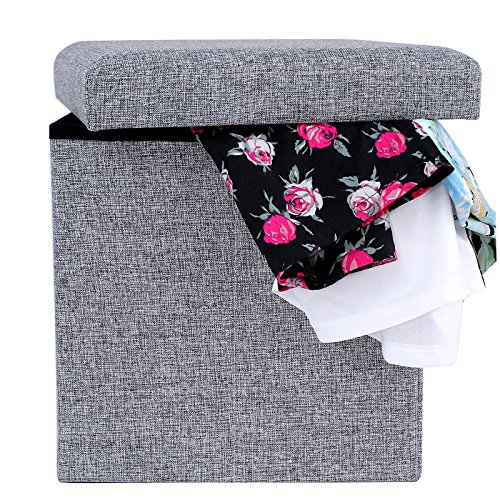- Title : Songmics Collapsible 15" Storage Ottoman Cube Foot Rest Stool Toy Chest Linen-like Fabric Light Grey ULOT10H