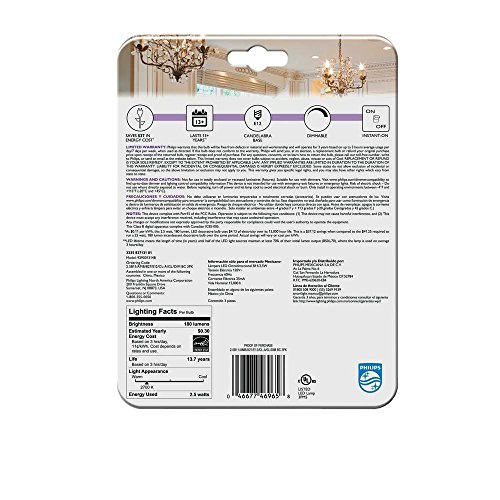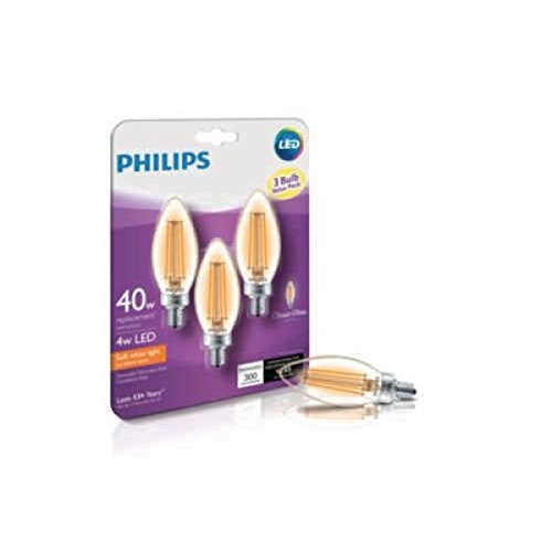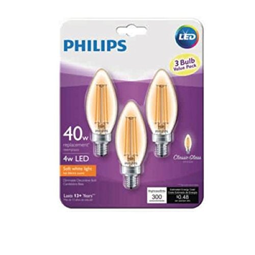 (12 Bulbs) Philips 40W Equivalent Soft White Clear Classic Glass Dimmable B11 LED Bulb with Candelabra Base