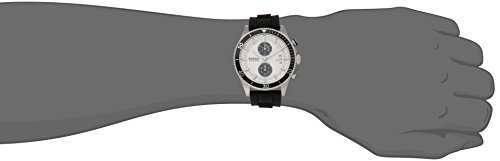 - Feature : Stainless steel watch with coin-edge bezel featuring white dial with date window and chronograph subdials / 45 mm stainless-steel case with glass dial window / Quartz movement with analog display / Silicone band with buckle closure / Water resistant to 100 m (330 ft)