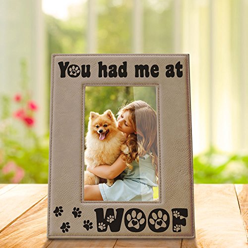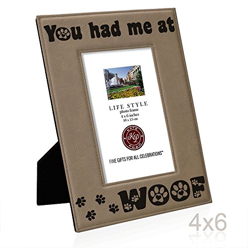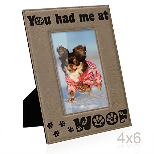 Kate Posh - You had me at WOOF Engraved Leather Picture Frame - Dog Lover Gifts, Birthday Gifts, Christmas Gifts, Pet Memorial Gifts, New Puppy Gifts, Paws and Bones Decor (4x6-Vertical)