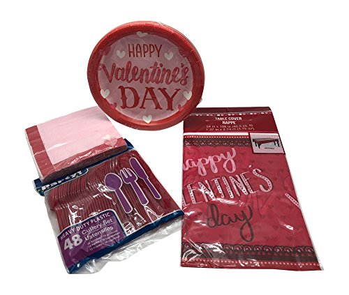 Valentine Day Party Supply Table Decoration Pack - Plates (18) Napkins (18) Tablecloth (54"x108") Cutlery Set