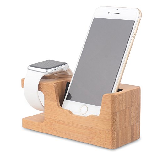 -. Feature : Material:100% Bamboo Wood. / UPGRADE VERSION: 2 in1 bamboo wood stand designed for your Apple Watch and iPhone, hold your devices stable and provides comfortable viewing / CLASSIC DESIGN: The docking station compact construction and lightweight material makes it easy to carry,Perfect for business or home environment. / Apple Watch and iPhone charging stations perfectly compatible, bamboo better protect the environment, so you can feel practical and ornamental, smooth, clear lines. / What you get:1 Apple Watch Wood Stand and 12 months Warranty good service.