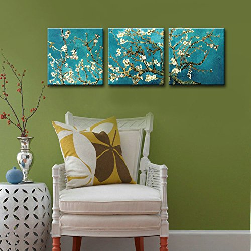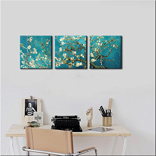 -. Title : Canvas Wall Art - Almond Blossoms Van Gogh Modern Art Reproduction Canvas P.R.Ints Stretched Gallery Wrap Ready to Hang -12"x12" x 3 pcs for Wall Decor- Nuolan Art-P3L3030-011