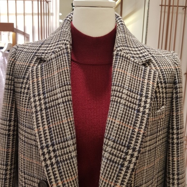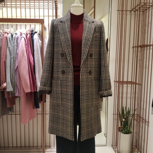 깔끔한 일자핏의 체크 롱자켓입니다오픈형 자켓으로 제법 도톰한 소재의 고급스런 겨울 자켓입니다~