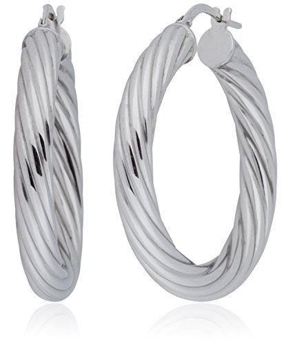 Silverluxe Women's Sterling Silver Large Twisted Round Hoop Earring 1 1/2" Made In Italy