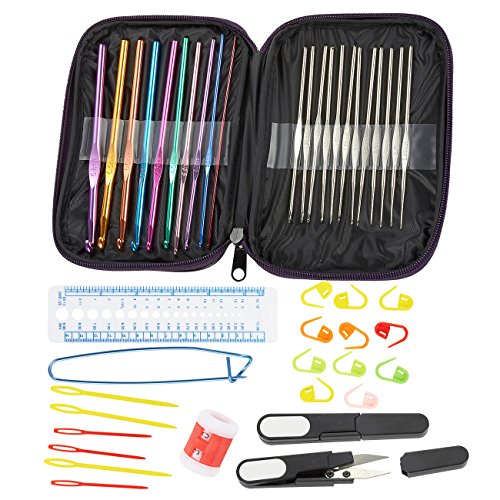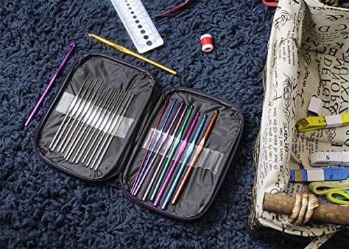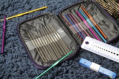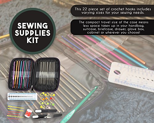 Crochet Kit with Various Aluminum Handle Crochet Hooks and Knitting Needles - Sewing Supplies for Craft Projects, Clothing Repair, Handmade Textiles, 7 x 5 x 0.8 inches