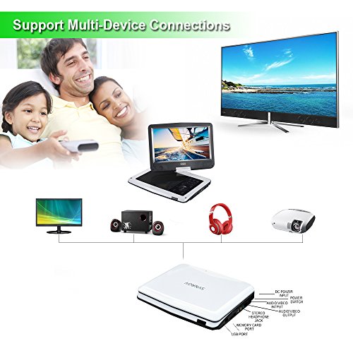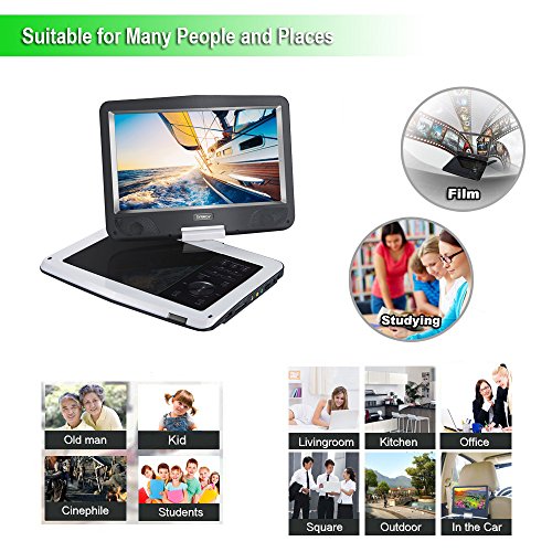 SYNAGY A20 10.1” Portable DVD Player CD Player with Swivel Screen, Rechargeable Battery, USB/SD Card Reader, AC/DC Adapter (White)