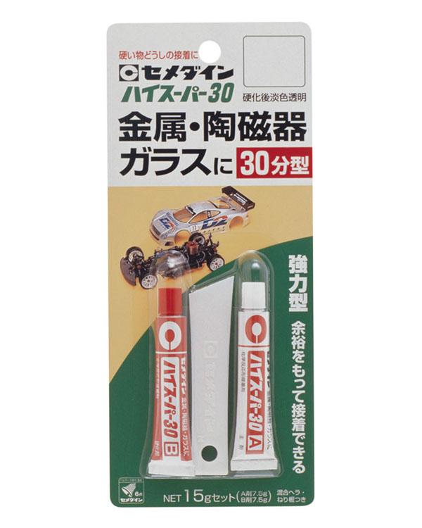 混合後30分で硬化が始まるタイプ。エポキシ系接着剤・A剤をピンクに着色してあります。金属、陶磁器、ガラスの接着に。