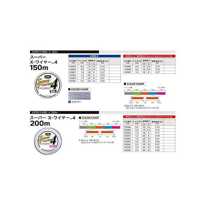 듀얼(DUEL) 라인 SUPER X-WIRE 4 200m 1.0호 H3590 :10m×5색 화이트 마킹 1.0호