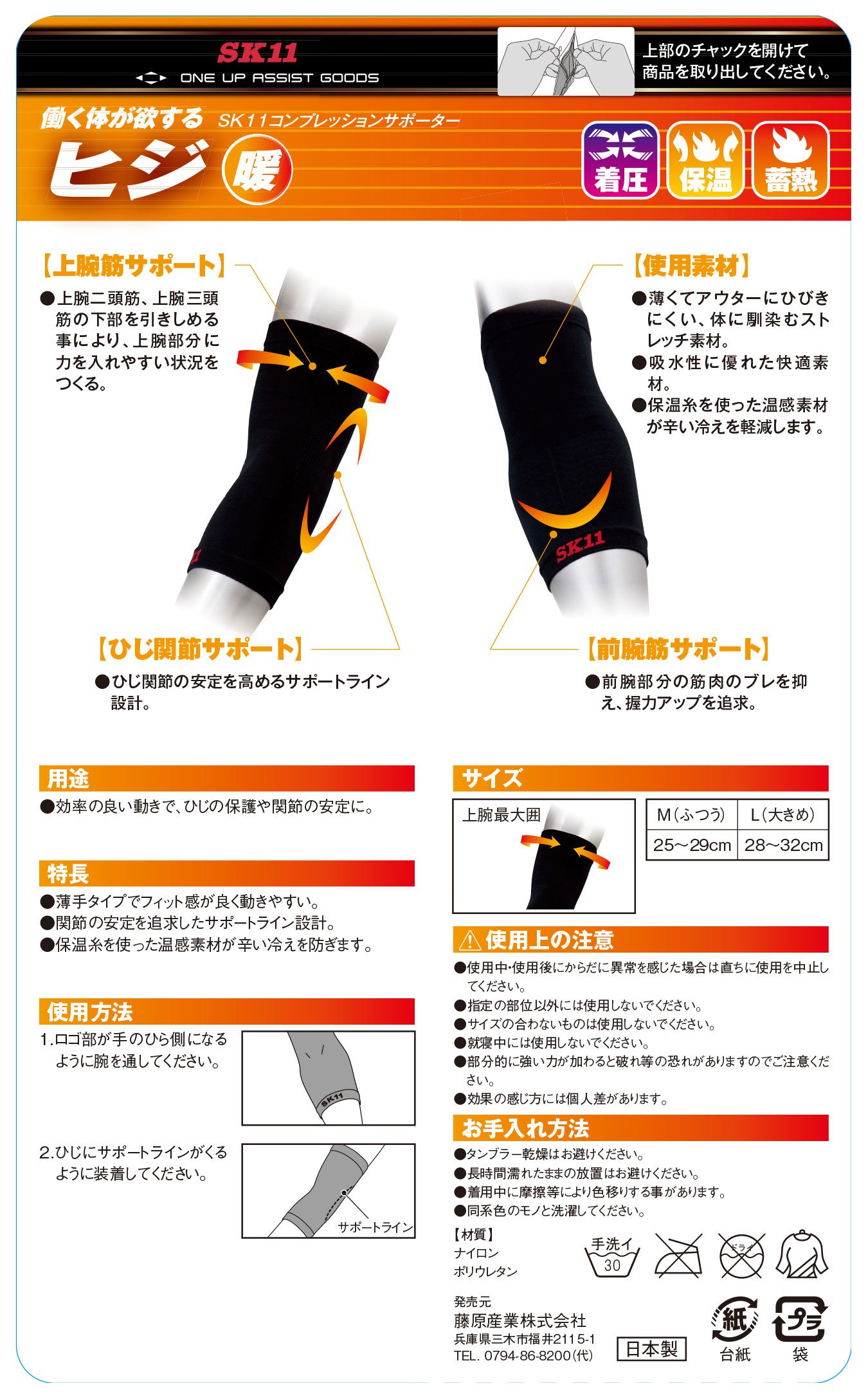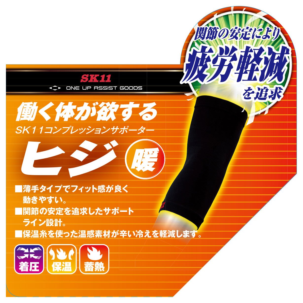 Support each part by moderate compression (pressure fitting) and taping effect, to reduce workers' fatigue.