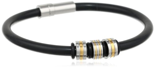 - Title : Men's Stainless Steel Black Rubber with Gold Ion Plating Bracelet