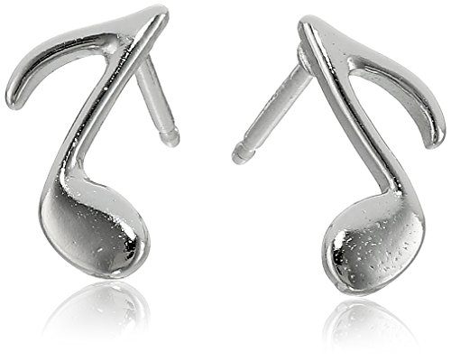 Rhodium Plated Sterling Silver Music Note Stud Earrings