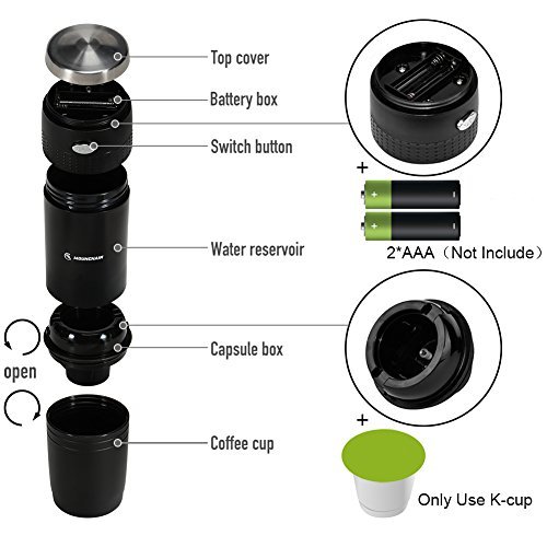 【PERFECT DESIGN】K cup coffee maker, sleek modern design and button operation. Perfect to bring along for hiking, camping, on the road or at the office. Personel coffee maker for all coffee lover.
