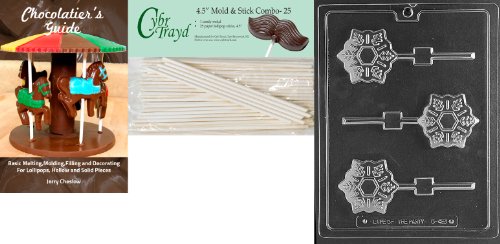 Cybrtrayd 'Snowflake Pop' Christmas Chocolate Candy Mold with 25 4.5-Inch Lollipop Sticks and Chocolatier's Guide