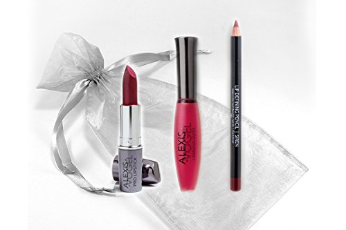 Feature : ULTRA RED LIP COLORS: This Lip Makeup Kit Includes Frosted Cranberry Lipstick, Clearly Cherry Lip Gloss, and Muted Vino Lipliner Pencil. Everything You Need to Create Long-Lasting, High Pigment, Ultra-Red Color for your Lips! / DRAMATIC, HIGH INTENSITY RED COLOR LIPSTICK: Alexis Vogel Pro Lipstick in Cranbaby Color is a Long-Lasting, Rich Shade of Red. It's Formulated so it won't Fade and it Contains Vitamin E to Moisturize Your Lips for All Day Wear. / DEVELOPED FOR EASY, PRECISE APPLICATION: Complete your Lip Makeup Look with Luminous Gloss in Cosmopolitan and Lip Defining Pencil in Siren. The Gloss Applies Perfectly and Provides Instant Shine. Precisely Line your Lips with the Lip Pencil for a Completed Lip Makeup Look. / DEVELOPED BY CELEBRITY MAKEUP ARTIST Alexis Vogel, the Artist Behind the Faces of Hollywood. The Kiss Me Red Kit is Part of a line of Premium Cosmetics for Achieving Superior Beauty Results. / SATISFACTION GUARANTEED