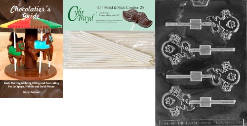 Cybrtrayd 'Cute Ghost Lolly' Halloween Chocolate Candy Mold with 25 4.5-Inch Lollipop Sticks and Chocolatier's Guide
