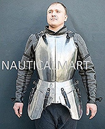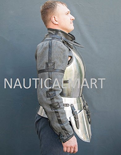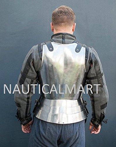 -. Brand : NAUTICALMART -. Color : Silver -. Department : mens -. EAN : 3831330885114 -. Feature : Adult size wearable Halloween costume / Made of 18 Gauge Solid Steel / Size : standard size, fits almost all adults / All Work is Hand Made / Custom Size Armor Can Order Direct To Nauticalmart INC. -. ProductGroup : Apparel -. ProductTypeName : ADULT_COSTUME -. Size : Large -. Title : Сombat cuirass in the style of the developed European Middle Ages for SCA LARP