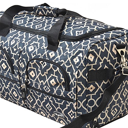 Studio : Olympia Luggage Publisher : Olympia Luggage Binding : Apparel Product Description Travel at ease with this versatile Olympia rolling duffel bag. Designed using supreme polyester, this rolling carry on duffel protects your personal belongings. Its convenient pockets allow you to store things in an organized manner. With a hideaway retractable handle and in-line skate wheel system, this 22-inch rolling duffel bag makes your travel hassle-free. This wheeled duffel bag has a main zippered compartment with a u-shaped opening to quickly pack and unpack. Use as a carry-on for travel or everyday rolling gym bag. 0