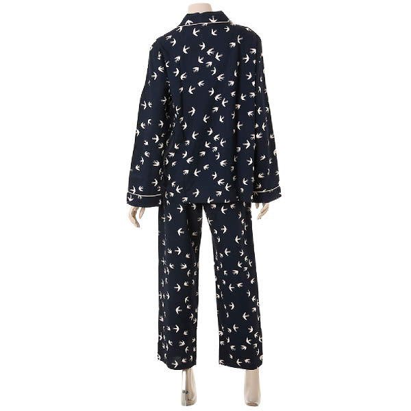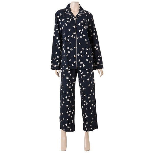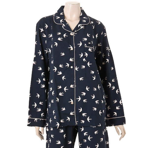 가볍고 촉감이 우수한 레이온소재로 감촉이 부드러운 제품입니다.네이비컬러에 버드프린트와 피치핑크의 파이핑 마무리가 여성스러움과 귀여움을 주며