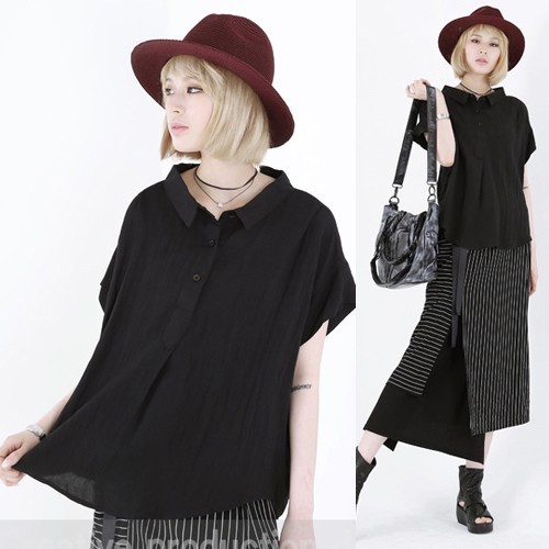 商品名:ブラウス レディース シャツ 無地 半袖 夏 2018 モード系 個性的 40代 ファッション
