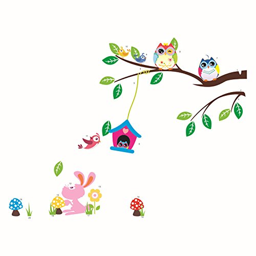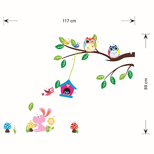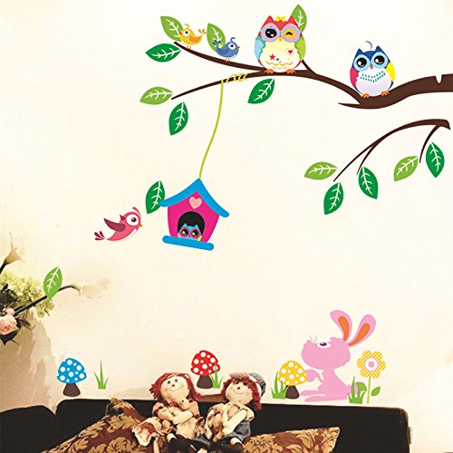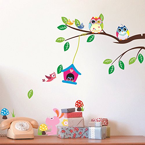 -. Title : Owls Birds Green Leaves Tree Wall Decal PVC Home Sticker House Vinyl Paper Decoration WallPaper Living Room Bedroom Kitchen Art Picture DIY Murals Girls Boys kids Nursery Baby Playroom Decor