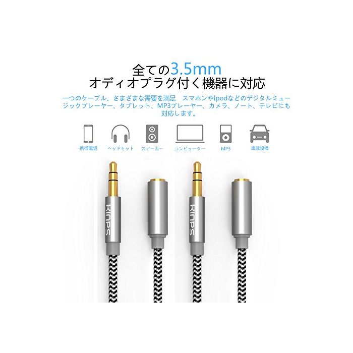 접속 보조:스테레오 오디오 케이블은 가정용 오디오 기기나 차량 탑재 오디오 기기 등에 대응한 오디오 케이블로,음원과 재생 기기의 사이의 거리가 먼 경우의 접속을 보조합니다.