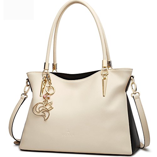 Product Description FOXER - LIGHT UP FOR YOU Material: Split leather ( cowhide leather), polyester silk lining Dimensions: 14.57" L x 5.12" W x 9.84" H Handle Length: 8.86" Color: Black, Red, White Structure: 2 main compartments, 1 zipper compartment, 1 side zip pocket, 1 phone pocket, 1 card pocket, 1 back zipper pocket and 1 front hidden pocket. About Us FOXER was found in 2000, all products created by top designers from Italy. FOXER has been focused on creating beautiful, fashion and suitable products for consumer from its inception, and become a brand leader in high quality leather bags is FOXER eternal pursuit. Warm Prompt: 1. Due to different measurement methods, there may be deviation of 0.4 - 1 inches for item 2. Colors may differ slightly from actual colors depending on your monitor, cellphone settings, different camera or light environment. 3. There might be a little smell as you get the new product, it is normal and the smell would disappear in a few days. Care Tips: 1. Keep away from oil, humidity, heat source and sharp instrument. Avoid exposure to chemicals, spikes and heat. Clean it with dry soft cloth when got stains. 2. In order to prevent your leather from fading, please avoid storing it in direct sunlight. 3. Do not dry leather in direct heat when wet. Leave it to dry naturally. 4. When you don¡?t use your leather product for a long time, please store it in a breathable bag rather than a plastic one to avoid a build up of humidity, as the leather product can get mildewed. 0