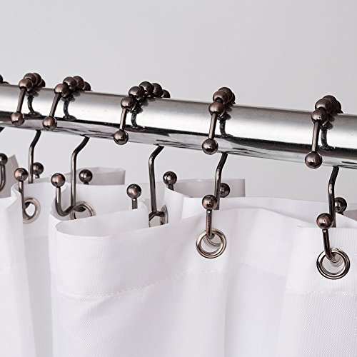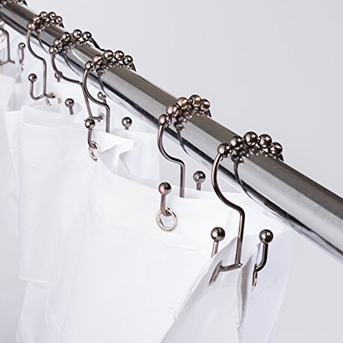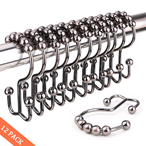 Rustproof Shower Curtain Hooks, Wimaha Heavy Duty Roller Double Glide Shower Rings for Bathroom Shower Rods Curtains Liners, Oil Rubbed Bronze, Set of 12 Hooks