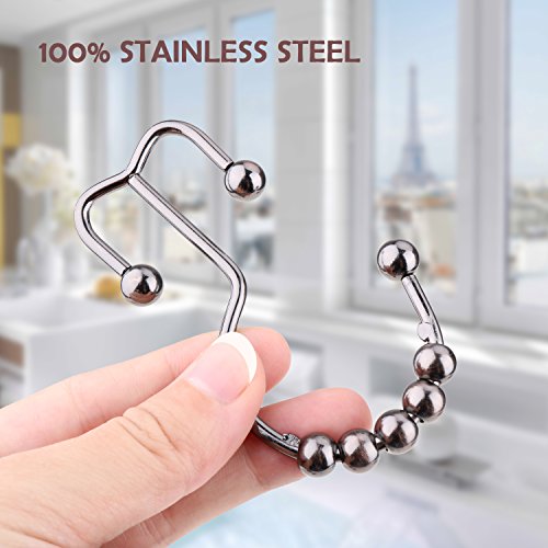 【Double Glide】: Double gliding function makes it easy to glide over the shower rod. Hangs both shower curtain and liner.