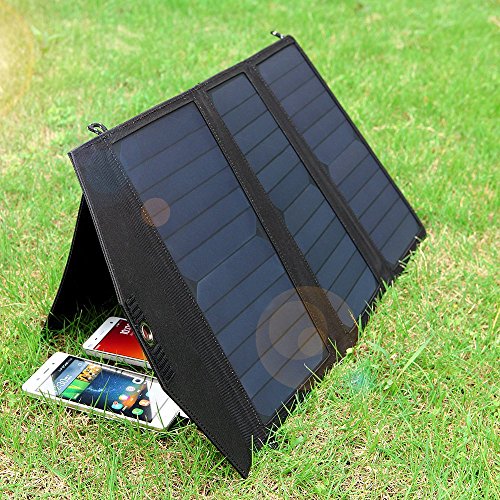 allimity 21W 2 USB Portable Foldable Solar Battery Charger External Battery Charger Pack for iPhones, iPads, Samsung, Sony, HTC, Blackberry, Backpack, Camping, Hiking and Outdoor Activities