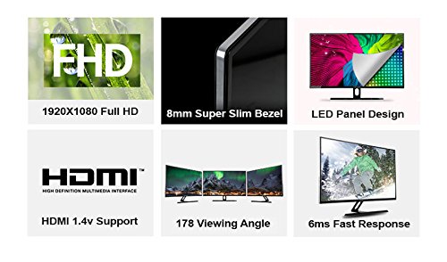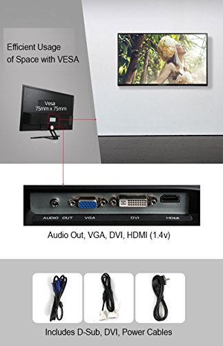 -. Feature : Full HD 1920 x1080 Resolution / Zero dead Pixel / Super Slim Bezel wide / HDMI 1.4V / DVI / VGA / AUDIO OUT / 178 Degrees of Wide Viewing Angle / 6ms Response Time / Tilt Stand / VESA 75mm x 75mm