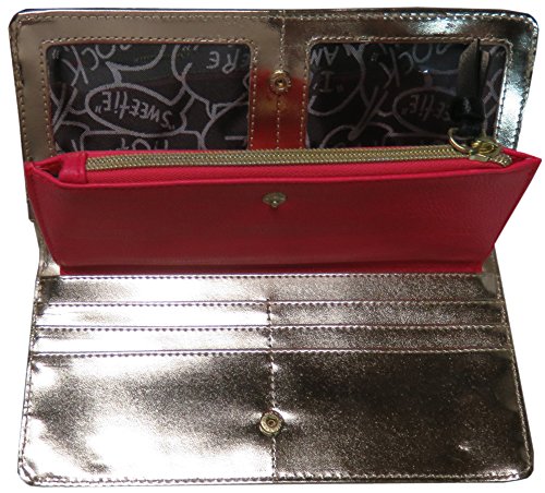 For the perfect blend of fashion and function, get the stylish Betsey Johnson Wallet. It's constructed of PVC Printed detail, front logo hear logo, The wallet features Center Coin pocket, 8 Credit card slots 3 Bills pockets and 2 Id windows. It will make the perfect gift for someone special!