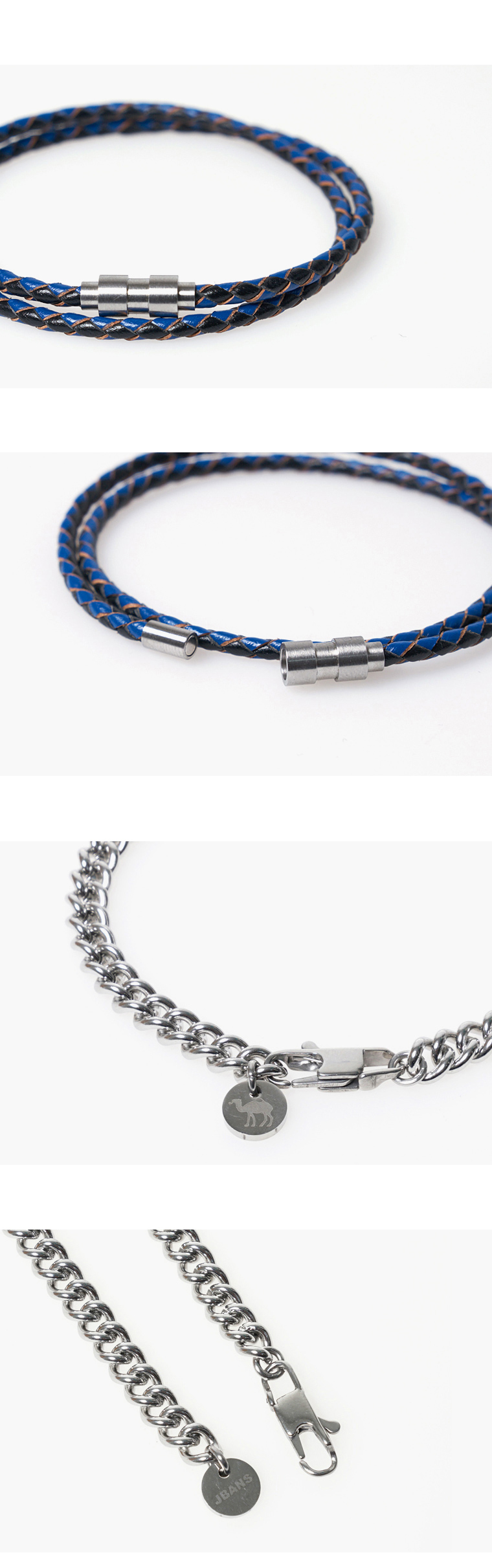 소재 - 써지컬스틸,소가죽,스테인레스 사이즈 - 착용둘레 (남성용 약17.5cm , 여성용 약15.5cm) 제조사 - ㈜제이반스 제조국 - 대한민국 제조년월 - 주문시 제작
