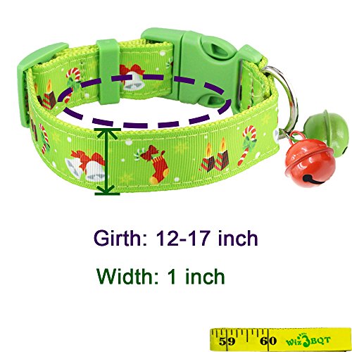 This cute collar is of bright red and green colors. And it's festive with Santa Claus, snowman, socks, and bell pattern. It's a great and wonderful Christmas gift for your dog.