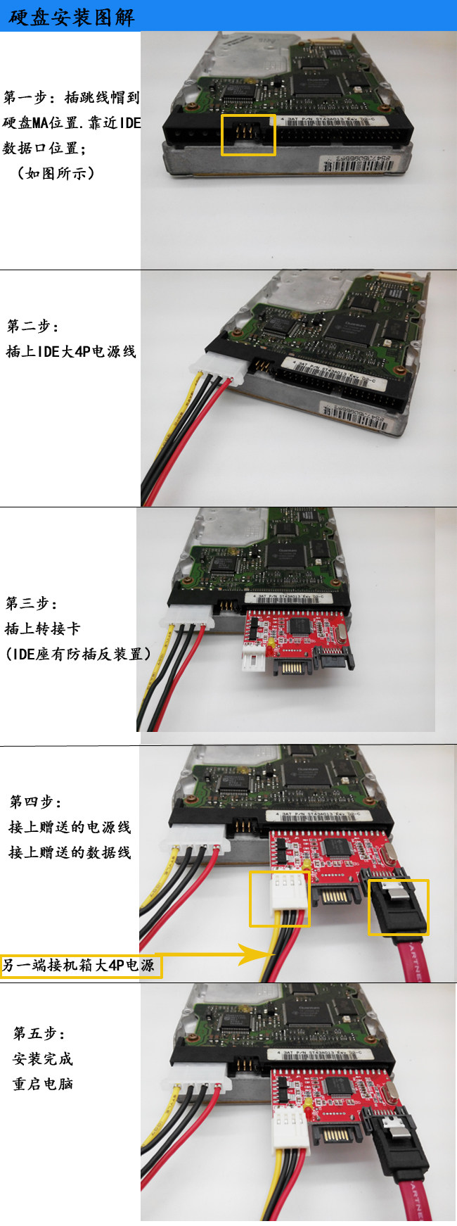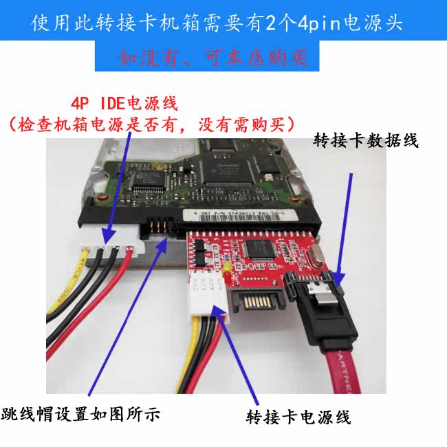 SATA1:SATA主板--IDE设备(即IDE的硬盘使用在SATA的主板上,请将SATA的线接到SATA1接口上,将转换器的IDE口插在硬盘IDE上,用前请将IDE设备的跳线设为MASTER)