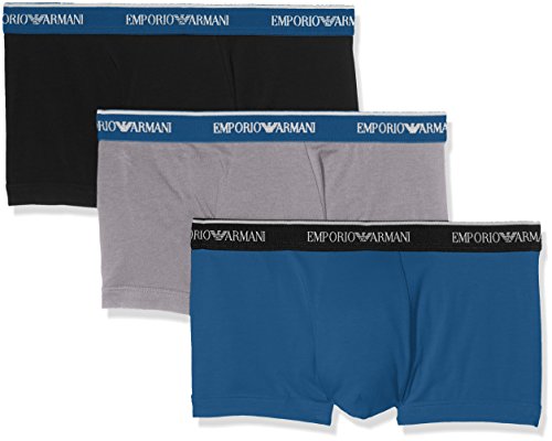 Emporio Armani Men's Stretch Cotton 3 Pack Trunk, Marine/Iron/Pencil, Small