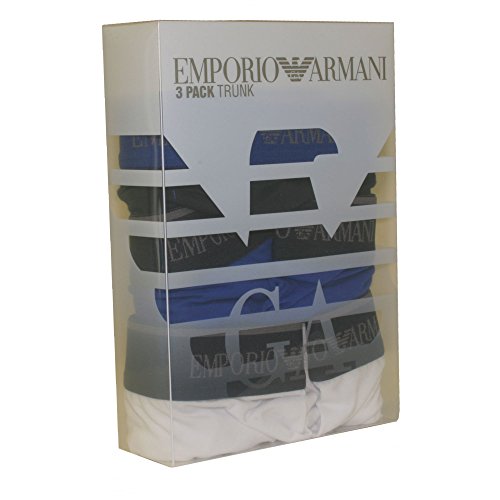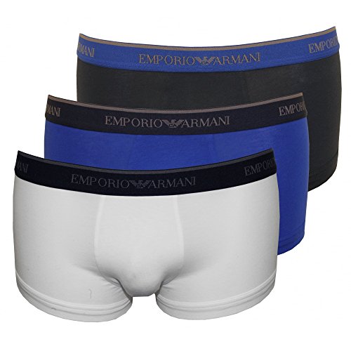 Emporio Armani Men's Stretch Cotton 3 Pack Trunk, Marine/Electric Blue/White, XL