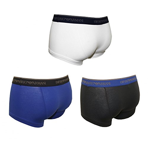 Emporio Armani Men's Stretch Cotton 3 Pack Trunk, Marine/Electric Blue/White, L