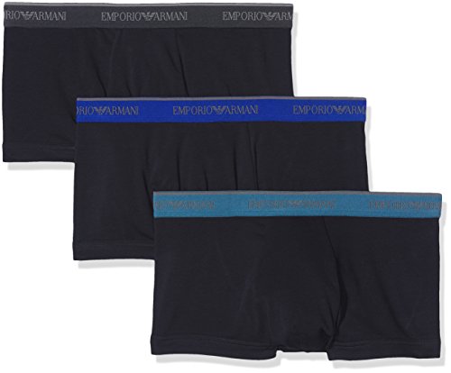 Emporio Armani Men's 3 Pack Stretch Cotton Trunks, Marine/Lagoon/Anthracite, Small
