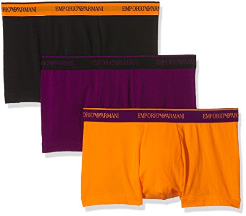 Emporio Armani Men's Stretch Cotton 3 Pack Trunk, Mandarin Orange/Black/Plum, X-Large