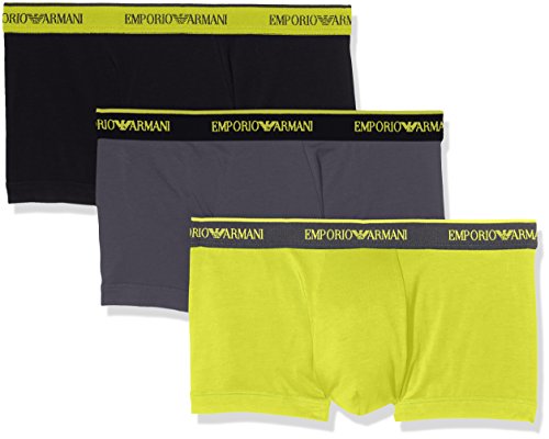 Emporio Armani Men's Stretch Cotton 3 Pack Trunk, Black/Anthracite/Lemon, Medium