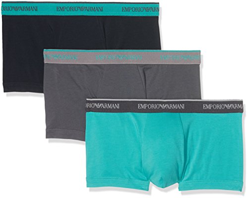 Emporio Armani Men's Stretch Cotton 3 Pack Trunk, Caribbean/Anthracite/Marine, X-Large