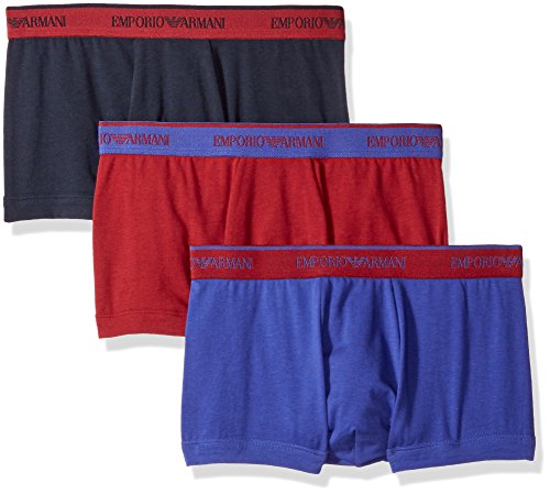 Emporio Armani Men's Stretch Cotton 3 Pack Trunk, Marine/Red Currant/Ink, Large