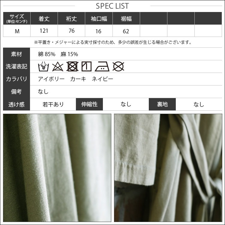 実寸:着丈 121cm 裄丈 76cm 袖口幅 16cm 裾幅 62cm