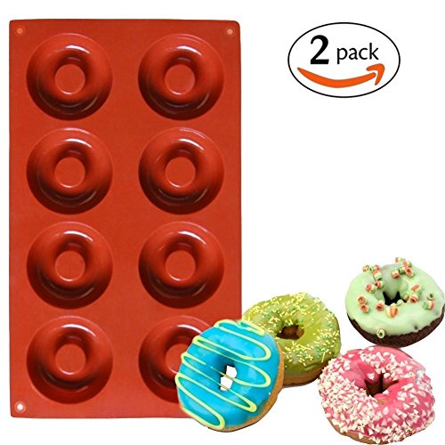 MUMUTIPS 8 Cavity Silicone mini Donut Pan Muffin Cups Cake Baking Ring Biscuit Mold,2-Pack
