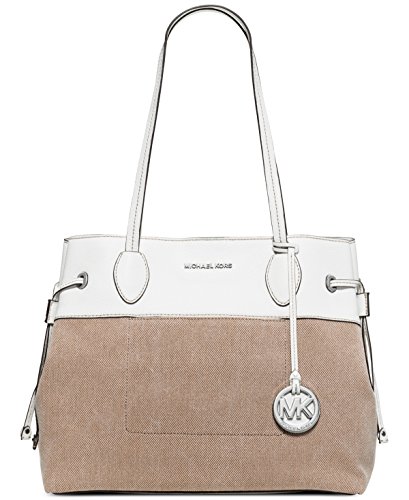 This relaxed and easy tote has a space for everything, with wall-to-wall pockets and a beautiful lining. By MICHAEL Michael Kors. Cotton canvas; trim: leather Double handles with 10-3/4" drop Magnetic snap closure Exterior features gold-tone hardware Interior features 1 zip pocket, 3 open pockets, 1 cellphone pocket and key fob 13-1/2" W x 11-1/2" H x 5-1/2" DFeature