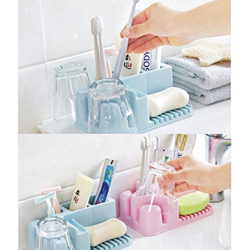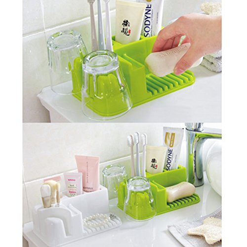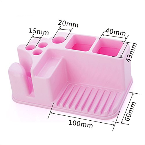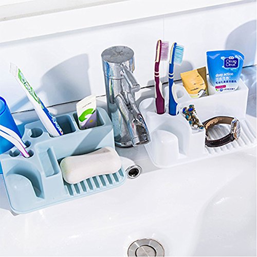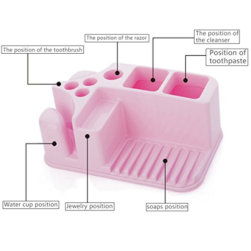 Featuring 3 holes for toothbrushes,1 hole for razor, 2 holes for toothpaste, and 2 larger space for your rinse cup,1 soap holder and one position for jewelry.