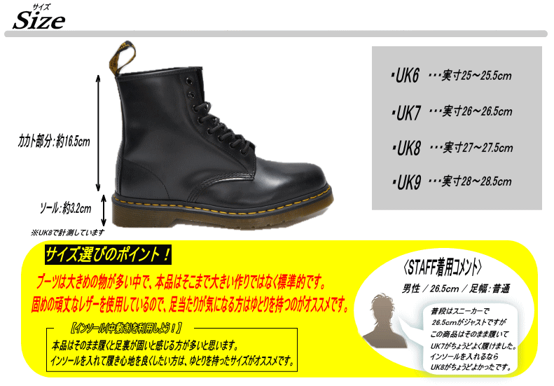 | 商品説明 | <BRAND STORY> 当初はワークブーツとしての用途が中心でしたが、スキンヘッズが目をつけ始めた事からミュージシャンの愛用者も増え始め,ビートルズ、ローリングストーンズなどの世界的アーティストに使用されることにより、ドクターマーチンは空前の大ブームとなりました。その後もパンクス・ロッカーズの定番として、ストリートカルチャーと密接に結びついたスタイルで絶大な支持を受けるなど、ファッションに欠かせない重要アイテムとして不動の地位を築いています。 <ITEM INFO> ・1960年に発売されたドクターマーチンのファーストモデル"1460"(1960年4月1日に発売した事にちなんでいる) ・ 流行に左右されない定番なので、いつでもどこでも履いて行けます。 ・ドクターマーチンソールと呼ばれる空気の層が組み込まれたアウトソールで、歩きやすく、機能的です。 ・ドクターマーチンの特徴ともいえる独特なステッチがアクセントになっています。 |