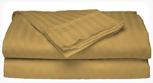 -. Title : Queen Size Gold 250 Thread Count 100% Cotton Sateen Dobby Stripe Sheet Set