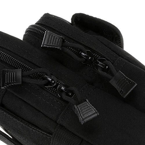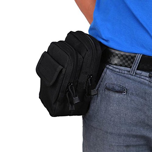 -. Feature : Size: 17.5x10x8.5cm; Net weight:170 g; Quantity Of Pouch: 6; Package Included: 1 x Waist Bag / A two-way zipper opening and closing main bag (with two small bags inside) / Outside is a vice bag with buckle switch, more convenient to put the phone, PDA, camera card, etc. / MATCHES - Modular webbing on back and compatible with tactical gear; suitable for tactical belt, tactical MOLLE vest or backpack. Besides, this belt bag could be attached to belt using the dual press stud open/close straps at the back and/or by using / GIFT - Chirstmas is coming, you can use a locking carabiner hanging on various equipment with Molle/PALS system/belt/EDC gear from a larger pack, ideal for outdoor camping, hiking, climbing or riding.